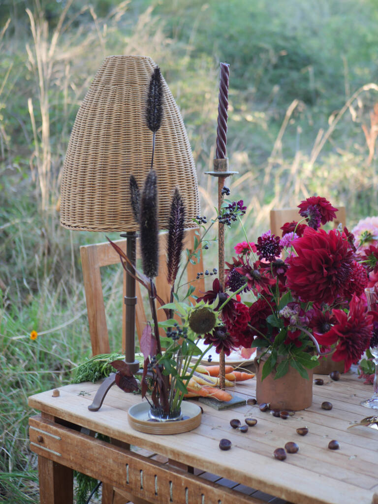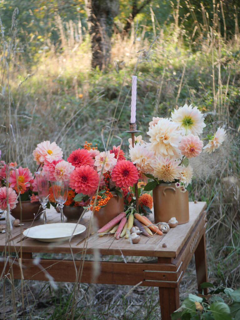 Pour clôturer la saison, cette table automnale met à l’honneur la richesse et la poésie des fleurs cultivées localement. Imaginée en collaboration avec une floriculture de la vallée de la Loire, la scénographie célèbre les textures naturelles, les couleurs profondes de l’automne et la beauté simple des fleurs de saison.