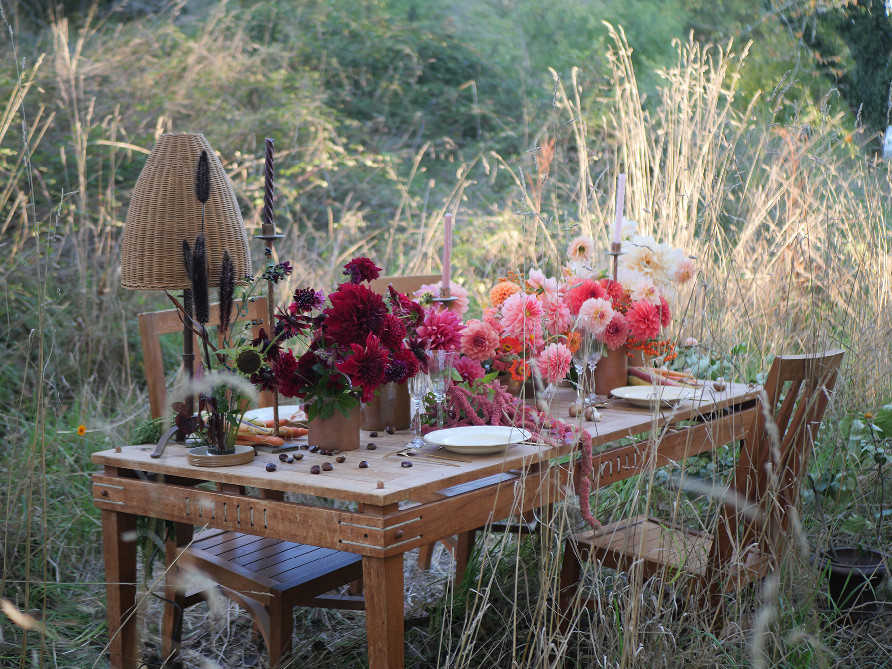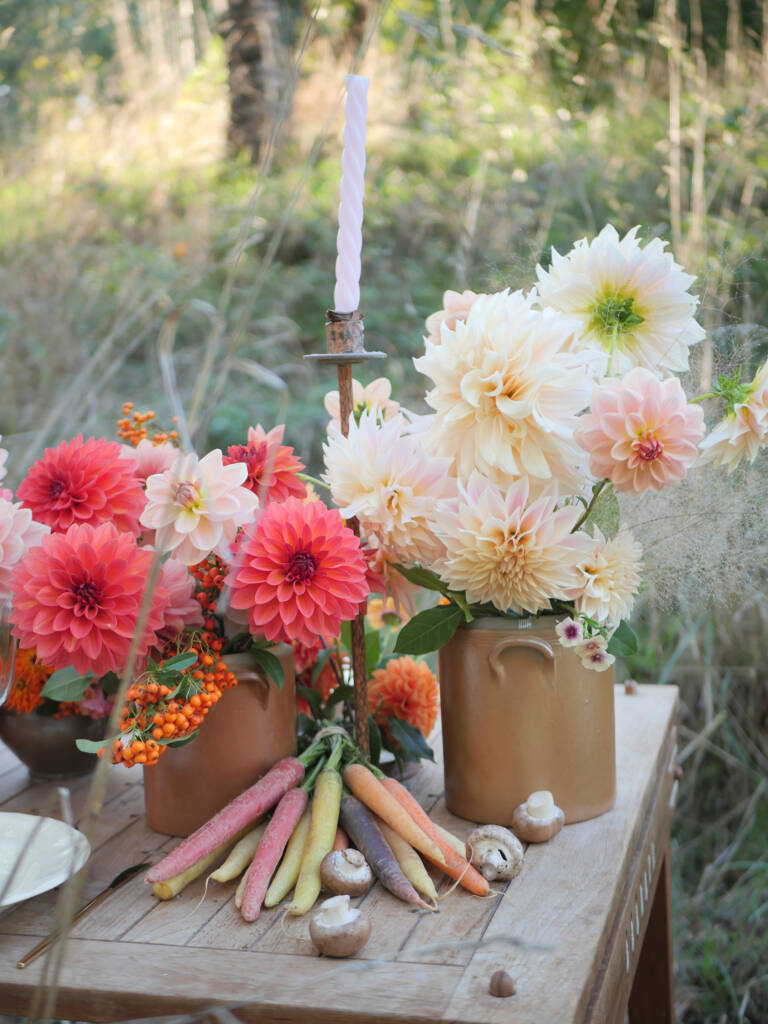 Entre tons chauds, matières brutes et compositions florales généreuses, cette table incarne une atmosphère conviviale et élégante, idéale pour inspirer les mariages et événements intimistes de fin de saison.